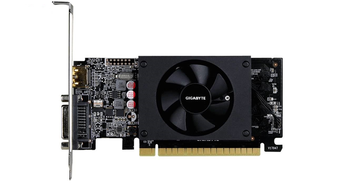 کارت گرافیک «GV-N710D5-2GL» محصول برند «گیگابایت» (GIGABYTE) است. در این کارت گرافیک از پردازندهی «GeForce GT 710» شرکت «ان ویدیا» (NVIDIA) استفاده شده است. فرکانس پردازندهی گرافیکی در حالت حداکثری به 954 مگاهرتز میرسد. 2 گیگابایت حافظهی گرافیکی GDDR5 با باس رابط 64 بیت روی این کارت گرافیک نصب شده و فرکانس حافظه 5010 مگاهرتز است. سیستم خنککنندهی این کارت گرافیک گیگابایت با استفاده از یک عدد فن طراحی شده و در ترکیب با رادیاتور آلومینیومی به دفع حرارت کارت گرافیکی کمک میکند. یک عدد خروجی HDMI و یک خروجی DVI-I در پشت کارت گرافیک GV-N710D5-2GL وجود دارد که با استفاده از آنها میتوان دو مانیتور را به کارت گرافیک وصل کرد و به حداکثر رزولوشن 4K دست یافت. برای تامین برق موردنیاز این کارت گرافیک به یک منبع تغذیهی حداقل 300وات نیاز خواهید داشت. این کارت گرافیک با استفاده از رابط PCI Express 2.0 به مادربرد وصل میشود